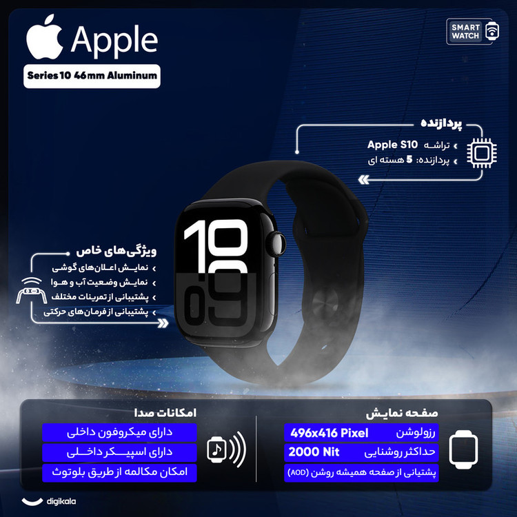 ساعت هوشمند 46 میلی‌متری اپل مدل Series 10 Aluminum با بند سیلیکونی
