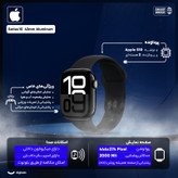ساعت هوشمند اپل مدل Series 10 با ابعاد ۴۲x۳۶x۹.۷ میلیمتر و وزن ۲۹.۳ گرم، محصولی مناسب برای آقایان و بانوان است که هم در فعالیتهای روزمره و هم در موقعیتهای رسمی و ورزشی قابل استفاده است. جنس بدنه این ساعت از آلومینیوم بوده و در ساخت آن از شیشه Ion-X و سرامیک سافایر بهره گرفته شده است. صفحه نمایش ۱.۷۷ اینچی آن از نوع Retina LTPO3 OLED با وضوح ۳۷۴x۴۴۶ پیکسل و تراکم ۳۳۰ پیکسل بر اینچ بوده که قابلیت روشنایی بین 1 تا 2000 نیت را دارد. این ساعت با سیستم عامل WatchOS نسخه 11 و پردازنده Apple S10 عرضه شده و از فناوریهای مکانیابی GPS، A-GPS، GLONASS، GALILEO، BDS و QZSS پشتیبانی میکند. ساعت هوشمند اپل مجهز به حسگرهای متعددی از جمله قطبنما، شتابسنج، ضربان قلب، سنجش اکسیژن خون، ژیروسکوپ، ارتفاعسنج و سنجش دمای بدن است. همچنین، قابلیت نمایشگر همیشه روشن، پایش وضعیت خواب، محاسبه کالری مصرفی و مسافت طیشده، تشخیص تصادف و سقوط از ارتفاع و پشتیبانی از Siri از دیگر ویژگیهای این محصول است. باتری لیتیوم یونی این ساعت با یک بار شارژ میتواند تا 18 ساعت در حالت عادی و 36 ساعت در حالت ذخیره انرژی کار کند. بهعلاوه، این ساعت در برابر آب تا عمق 50 متر مقاوم است و دارای گواهی IPX6 برای مقاومت در برابر گرد و غبار است. گفتنیست که قابلیت استفاده از سنسور اکسیژن خون وجود ندارد.
